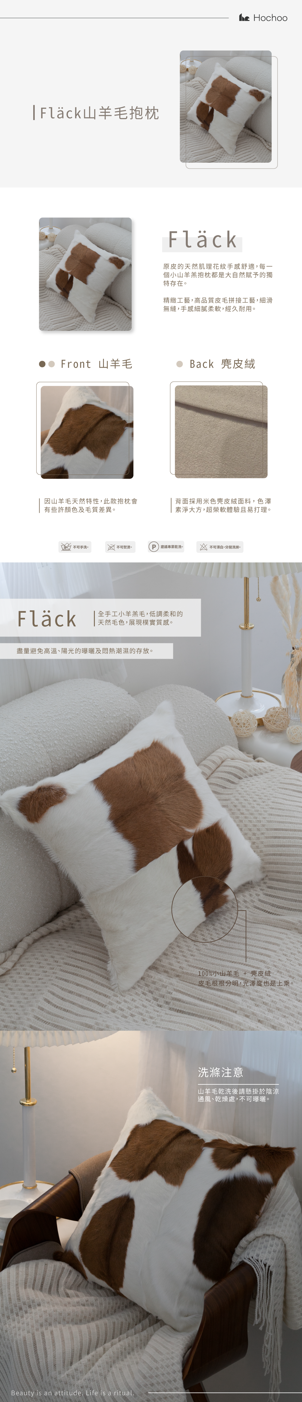 全手工小羊羔毛,低調柔和的天然毛色,展現樸實質感。