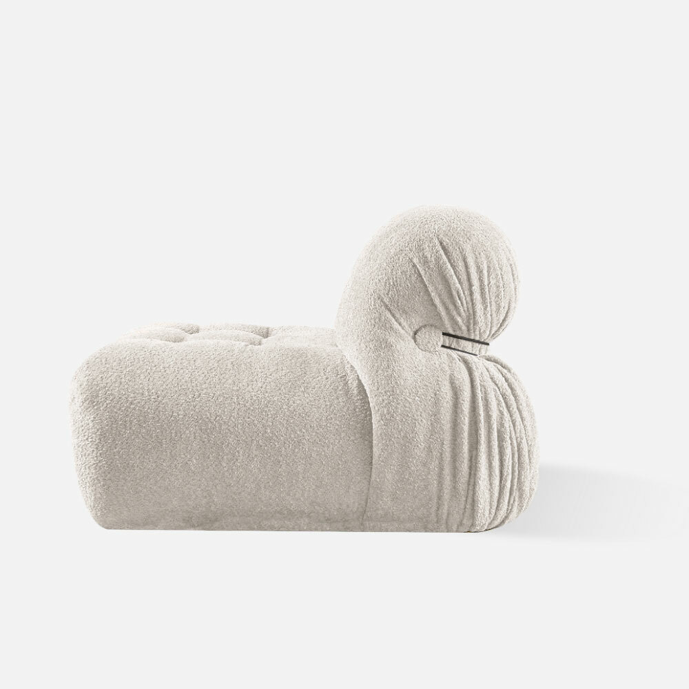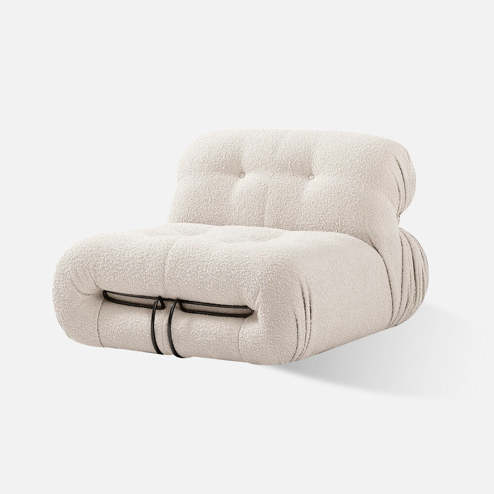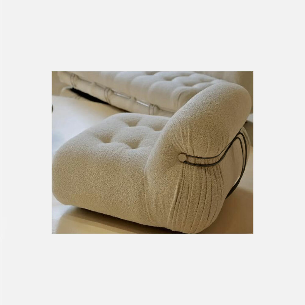 金屬骨架與顆粒絨,兼具穩固感與摩登氣息