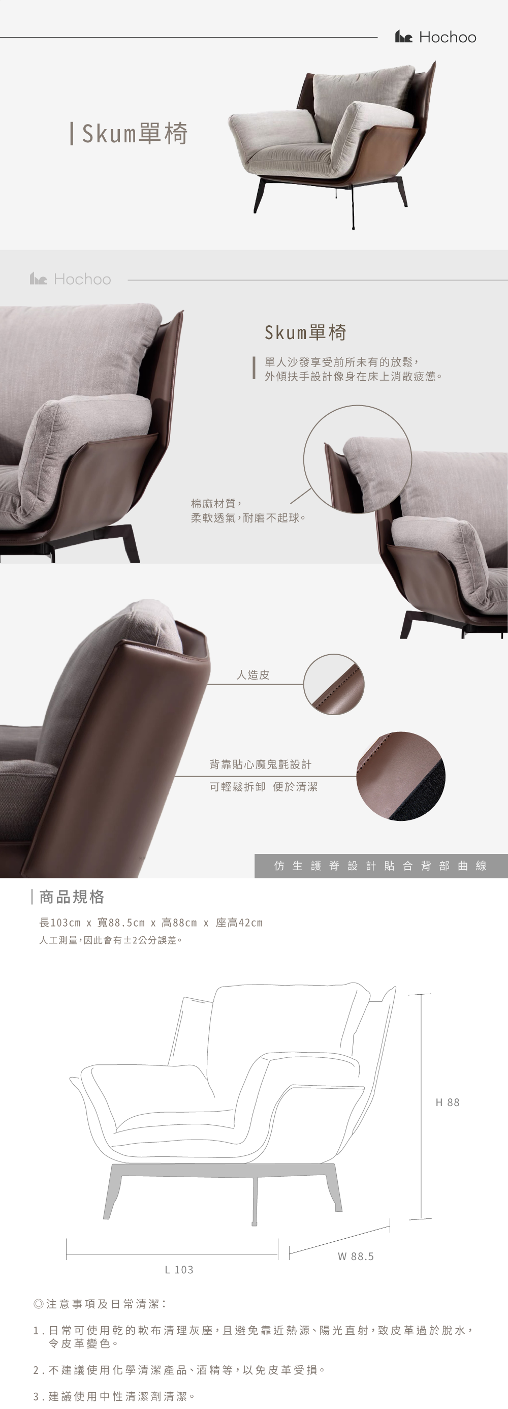 1. 皮革定期可使用乾布,輕擦拭表面灰塵。