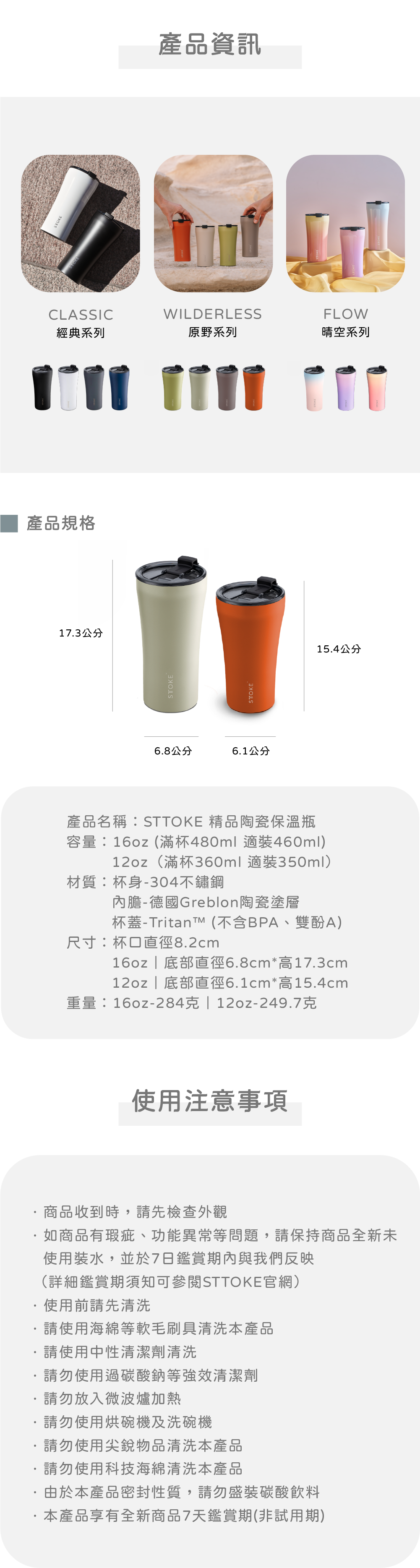 尺寸 | 350ml款: 杯口直徑8.5 X 底部直徑6.1 X 高15.4 cm