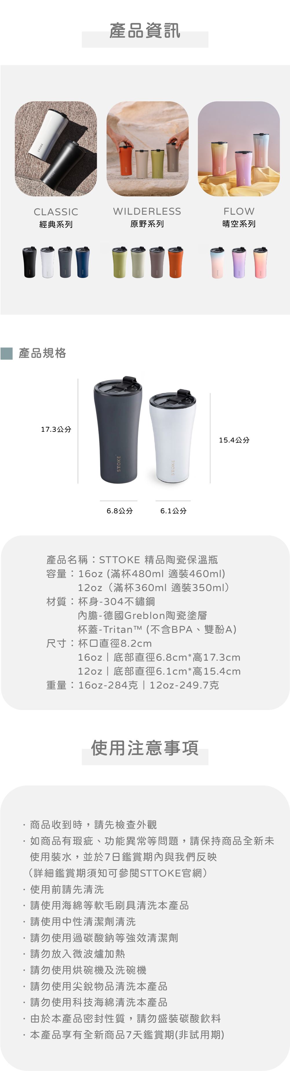 460ml款: 杯口直徑8.2 X 底部直徑6.8 X 高17.3cm