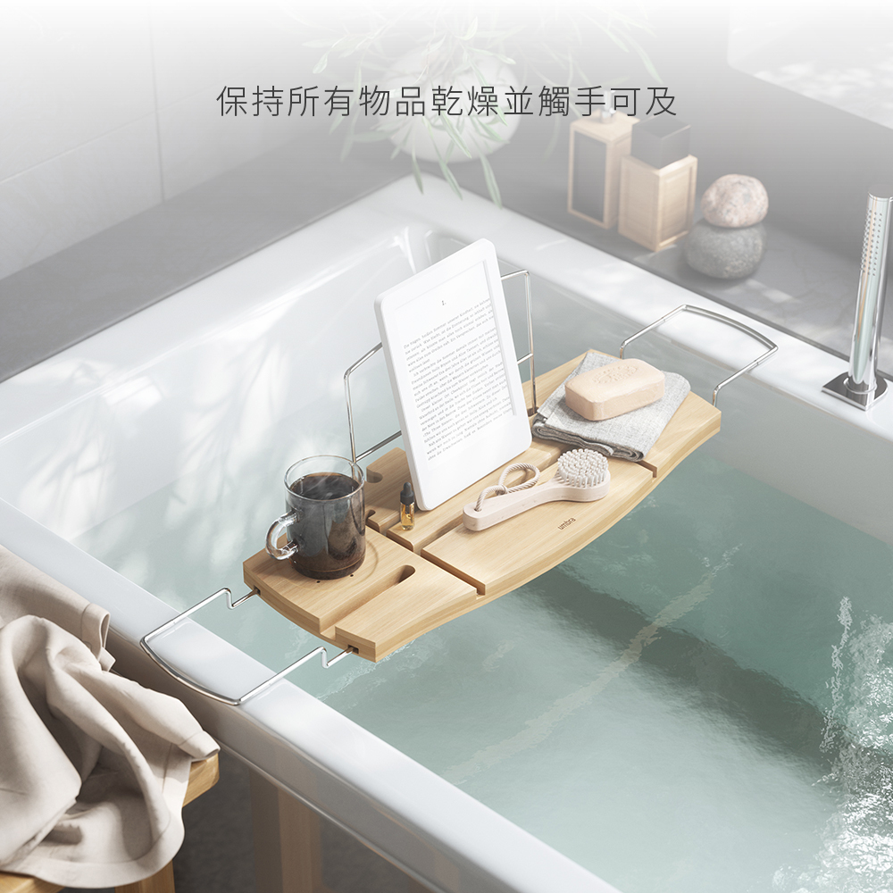 這款設計結合了優雅與實用,讓你在溫暖的泡澡中,所有必需品都觸手可及。