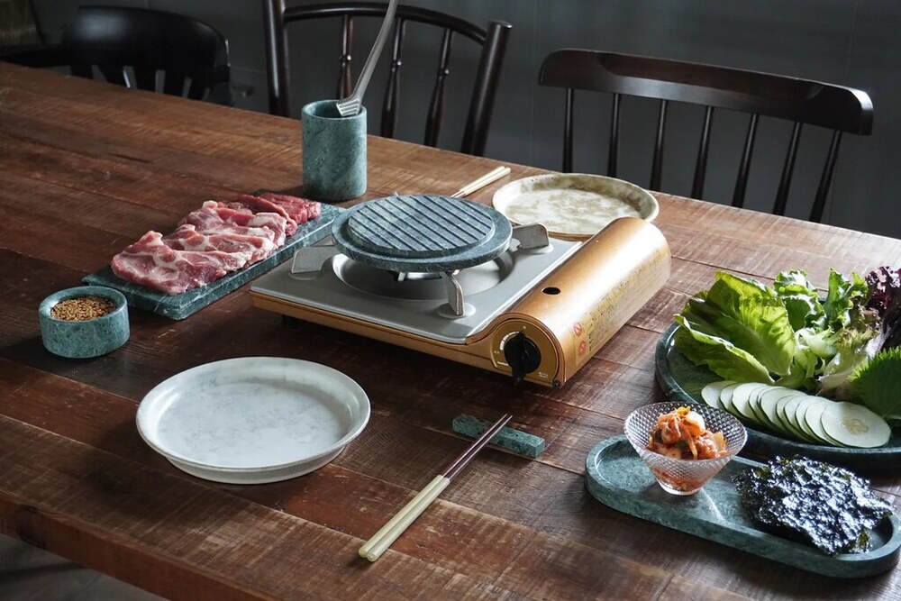 烤完後不急著清理,等石板冷卻後,可以溫熱水沖刷,擦拭曬乾即可。