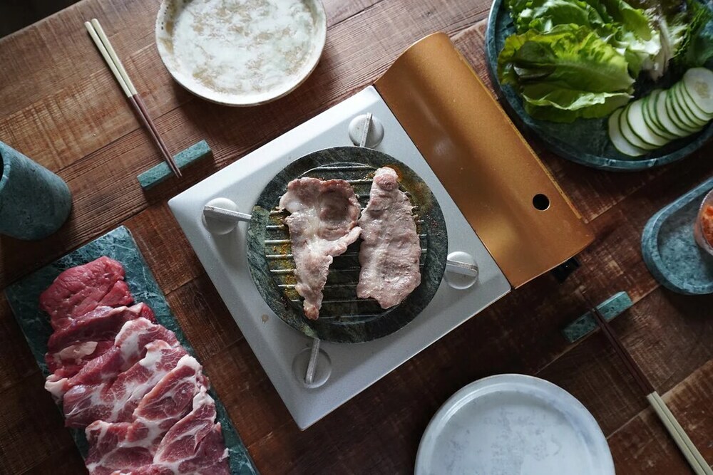 全程以小火慢烤方式使用,不僅能減少油煙,更能避免天然石材縫隙太突然的膨脹而造成裂痕。