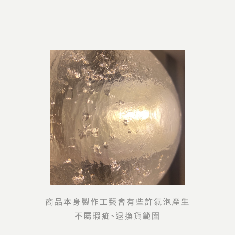 玻璃製品皆為師傅手工製作,會有小黑點,氣泡,小凹點等,由於在高溫燒製過程自然形成不可避免,不影響正常使用。
