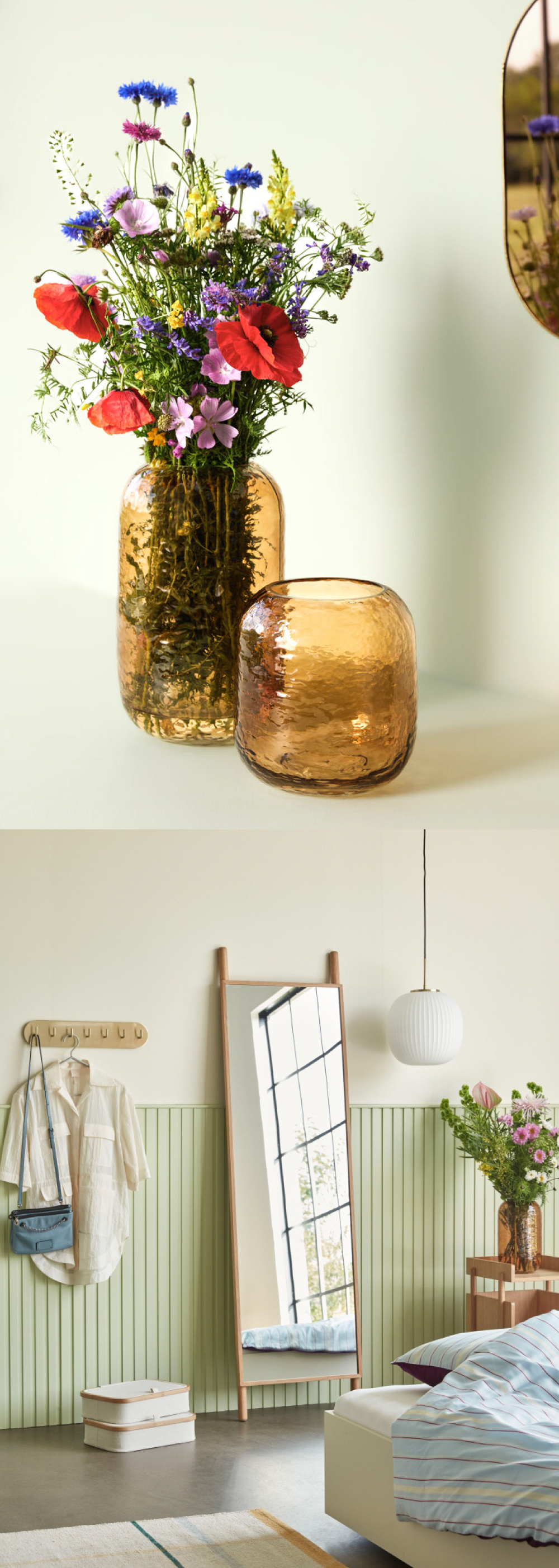 好萩家居|丹麥 Hübsch - 琥珀色玻璃花瓶-2件組