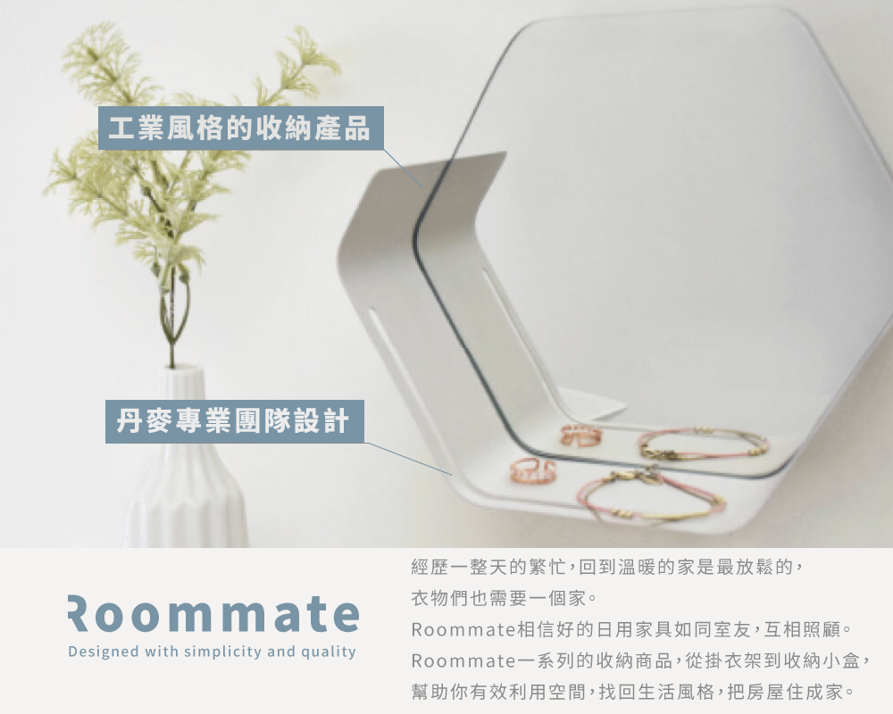 Roommate 一系列的收納商品,從掛衣架到收納小盒,幫助你有效利用空間,找回生活風格,把房屋住成家。