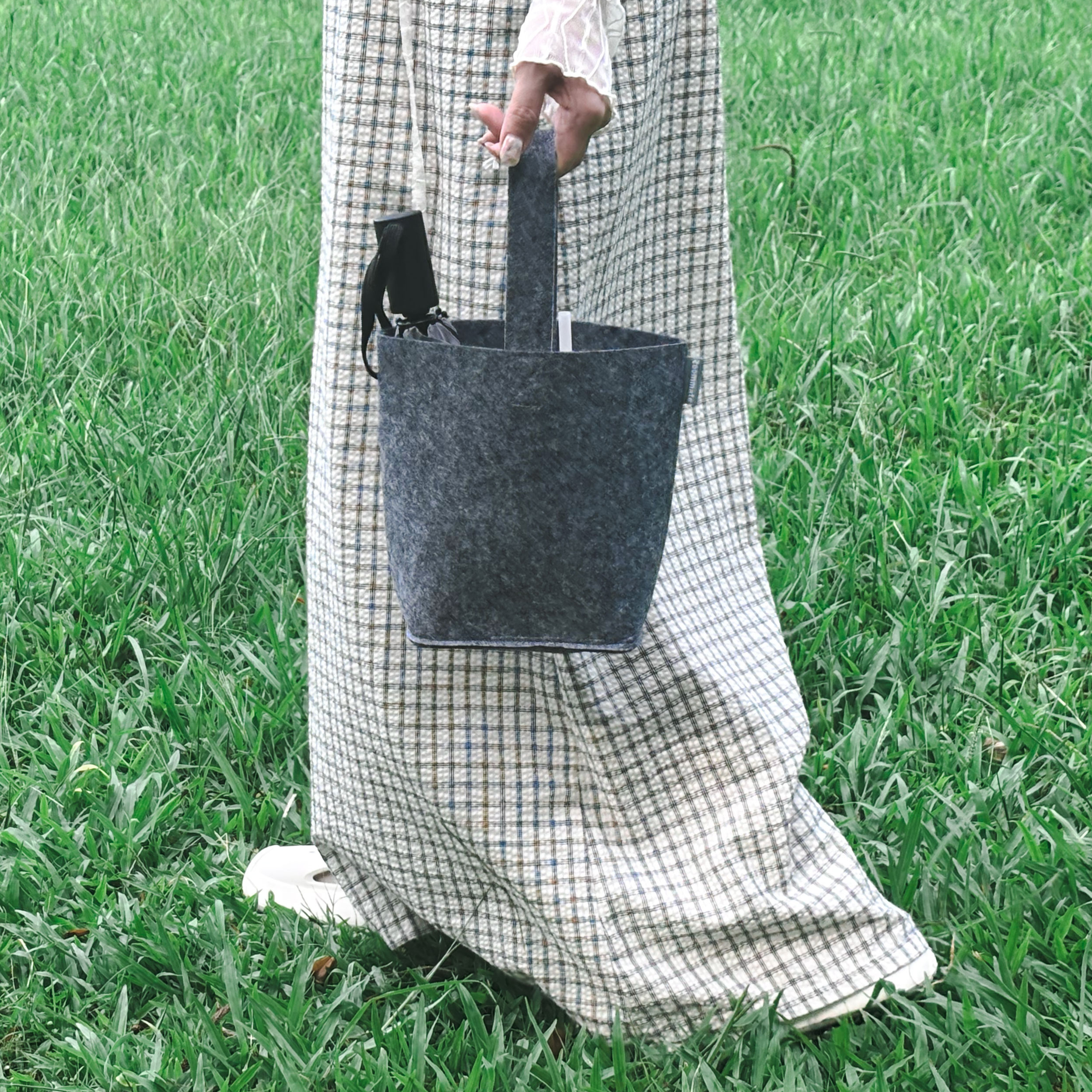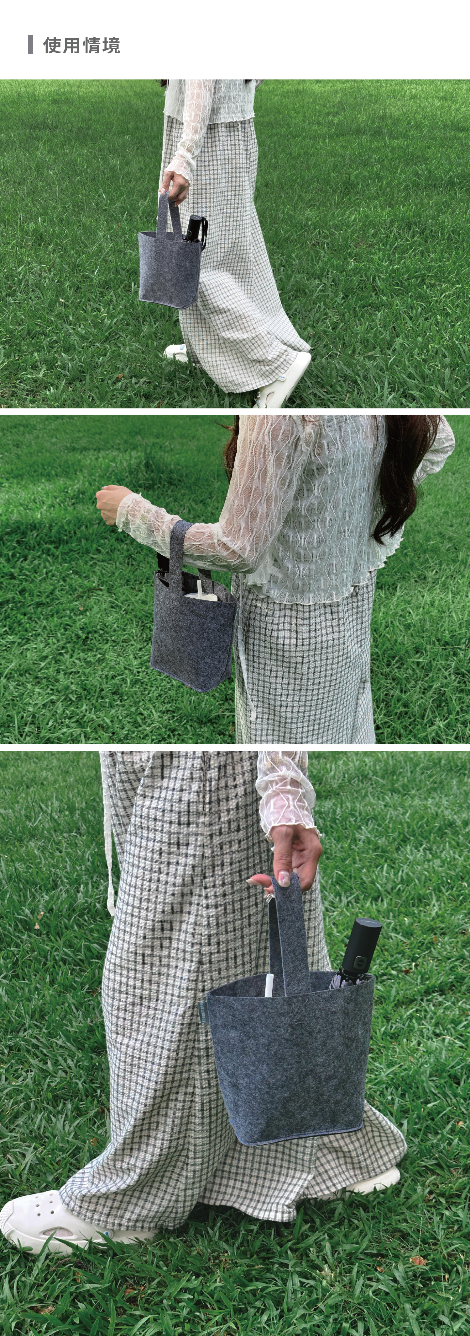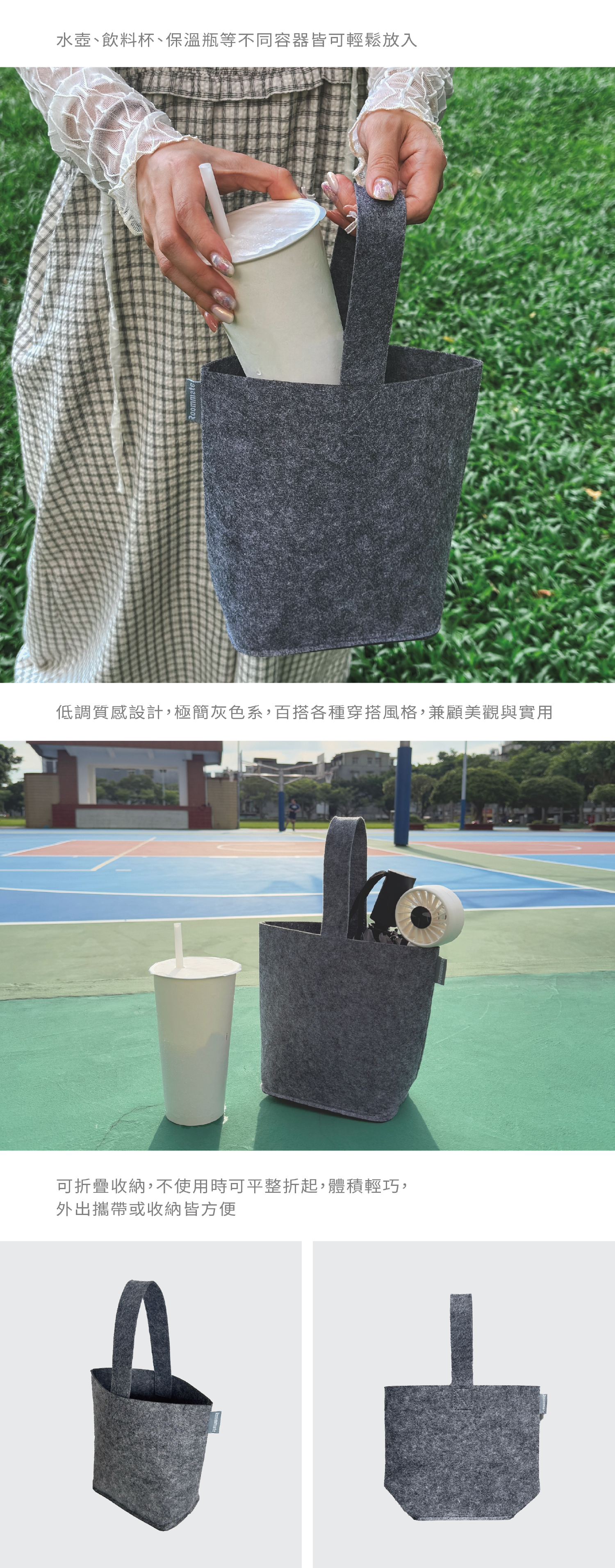 簡約質感.日常出行的理想夥伴 以極簡灰色調結合羊毛氈製成,柔韌挺立、不易變形