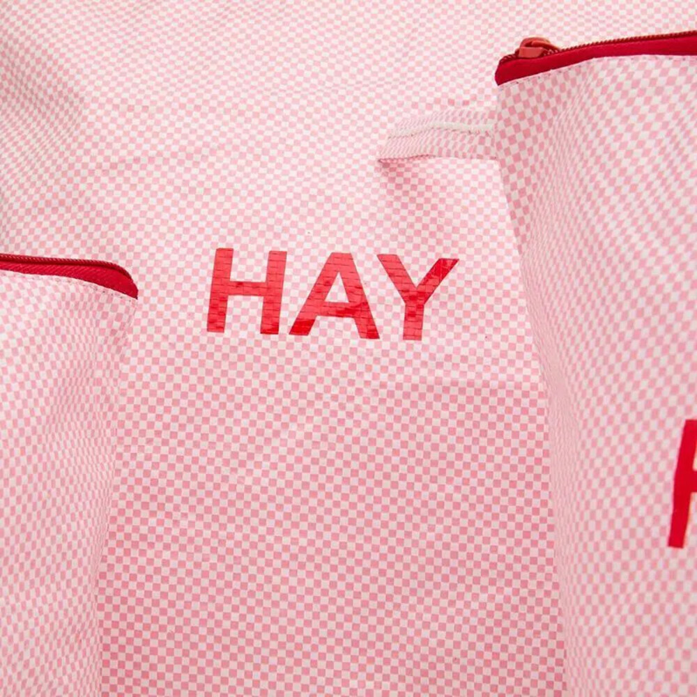 附有對比色 HAY logo 與拉鍊,展現繽紛又實用的北歐風格,是居家收納與外出旅行的理想選擇
