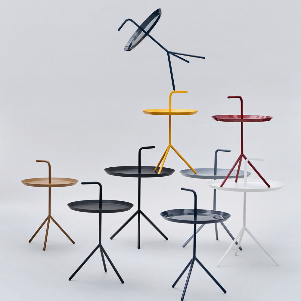 Don't Leave Me (DLM) 因其便攜式設計而得名,配有手柄,可以輕鬆地在各個空間之間移動。 其輕質結構與傾斜的桌腳維持了平衡,以確保穩定性。