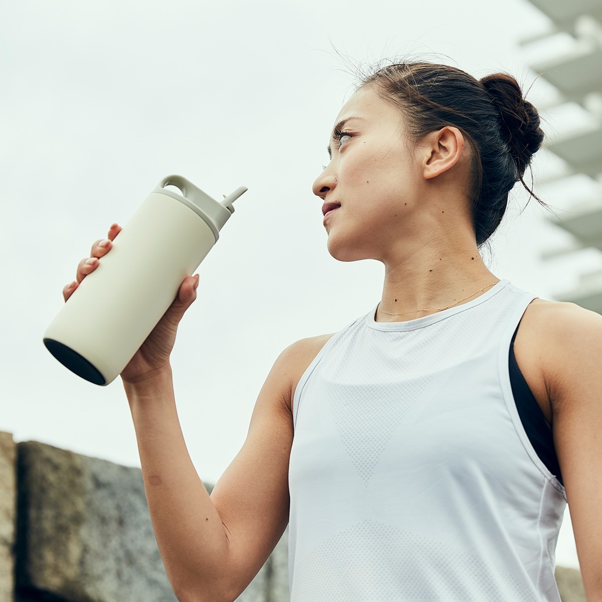 即時在移動時單手輕壓即可直接傾斜瓶身舒適飲用;