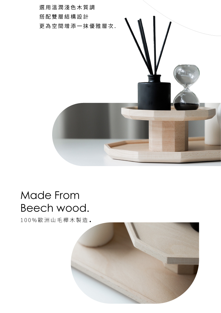 選用溫潤淺色木質調,搭配多邊形輪廓與雙層結構設計,不僅具實用性,更為空間增添一抹優雅層次。
