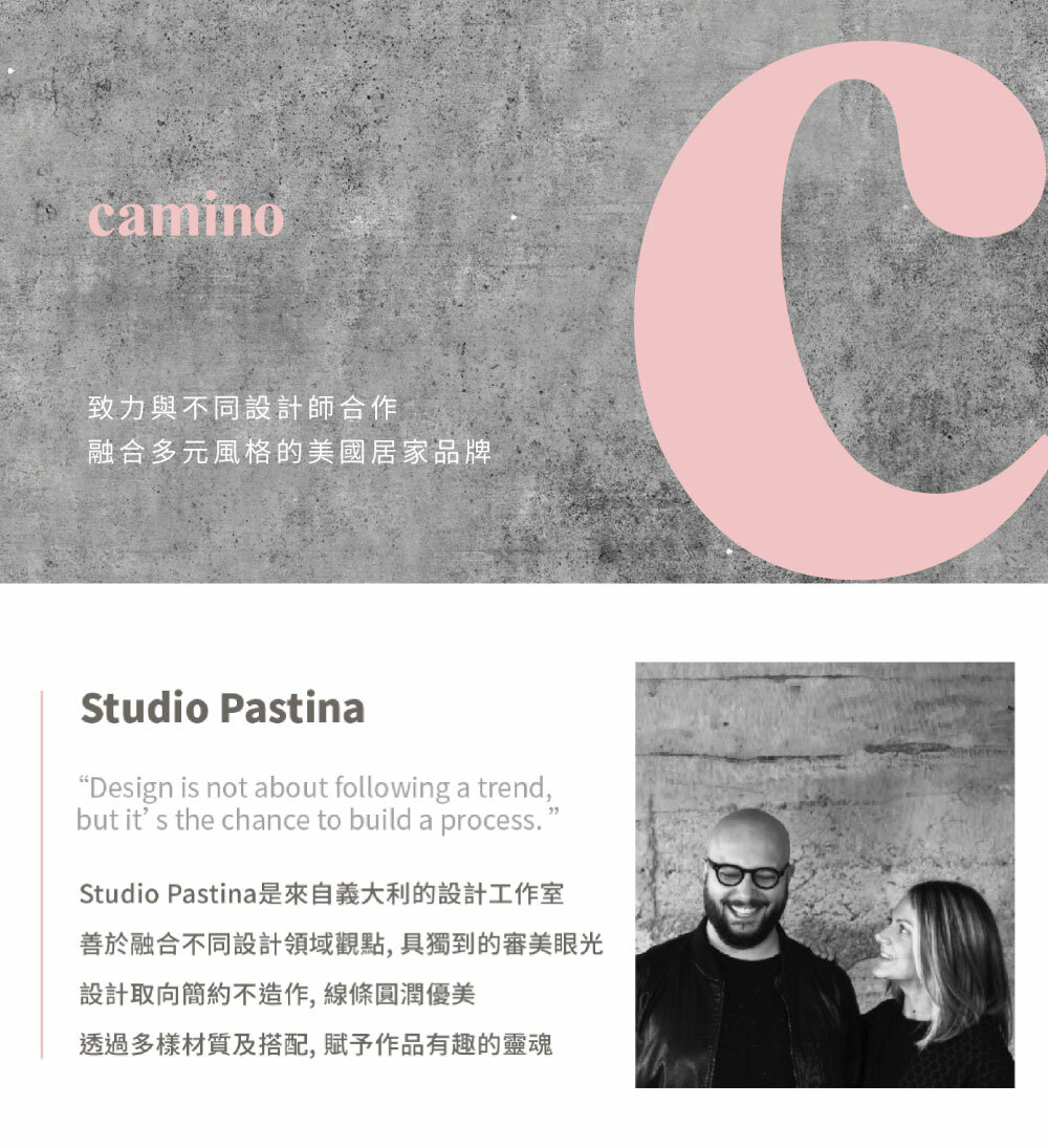 camino設計風格混合北歐色系與英美工業風,camino是西班牙文中「路」的意思,生於這個世代的我們,時常在城市間往返,國度間奔波,在實踐夢想路上,時停時走。camino因此誕生為了「城市旅居者」而創立的品牌,讓我們在持續的遷移中,也能享得片刻認同的歇息。
