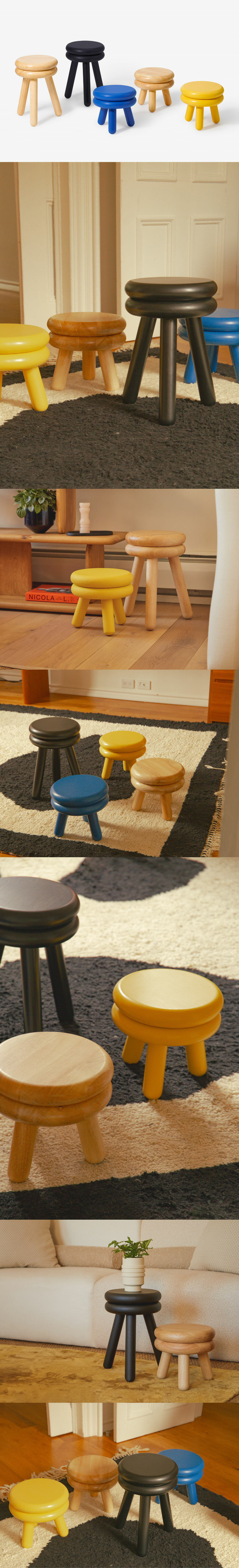 利用扎實橡膠木打造高矮款椅凳,
