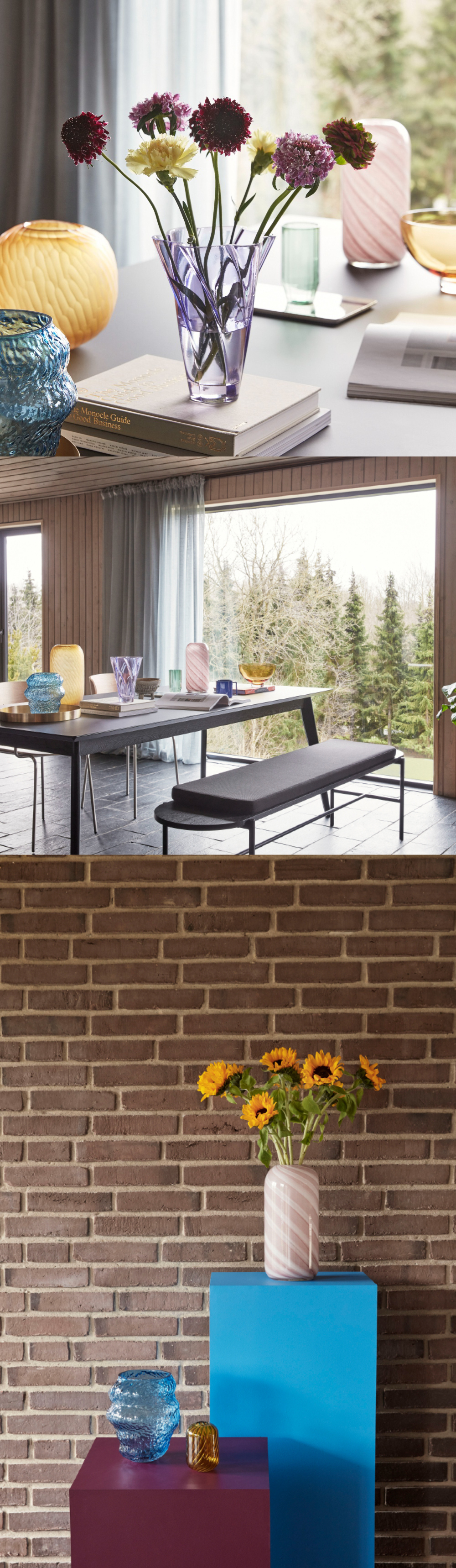 丹麥 Hübsch - 粉色條紋花瓶 2件組