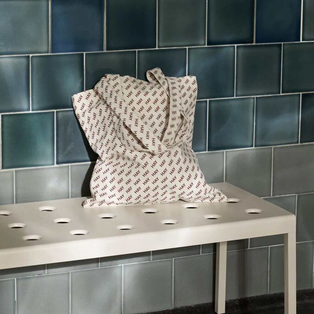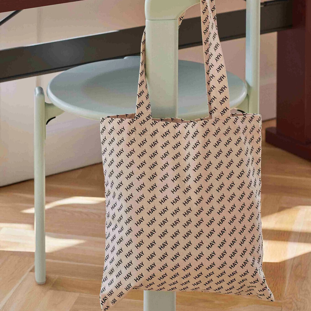 HAY Logo Tote Bag 採用長背帶和小型 HAY Logo 印花,打造出實用且獨特的托特包。 採用有機棉製成,有酒紅、黑的顏色 logo 組合可供選擇。