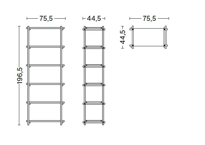 Woody 有不同的尺寸可供選擇,可以用作獨立的層架系統、靠牆放置或作為簡易隔間。