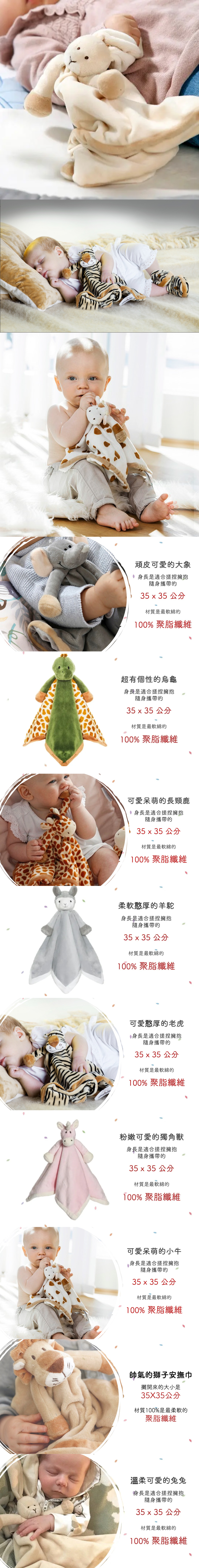 陪伴了許多瑞典寶貝們長大,除了軟綿的手感,加上特殊的動物造型令人愛不釋手外;產品的高品質,通過多國對嬰幼兒用品的安全檢測,絕對是您可以信任的嬰幼兒安撫產品。