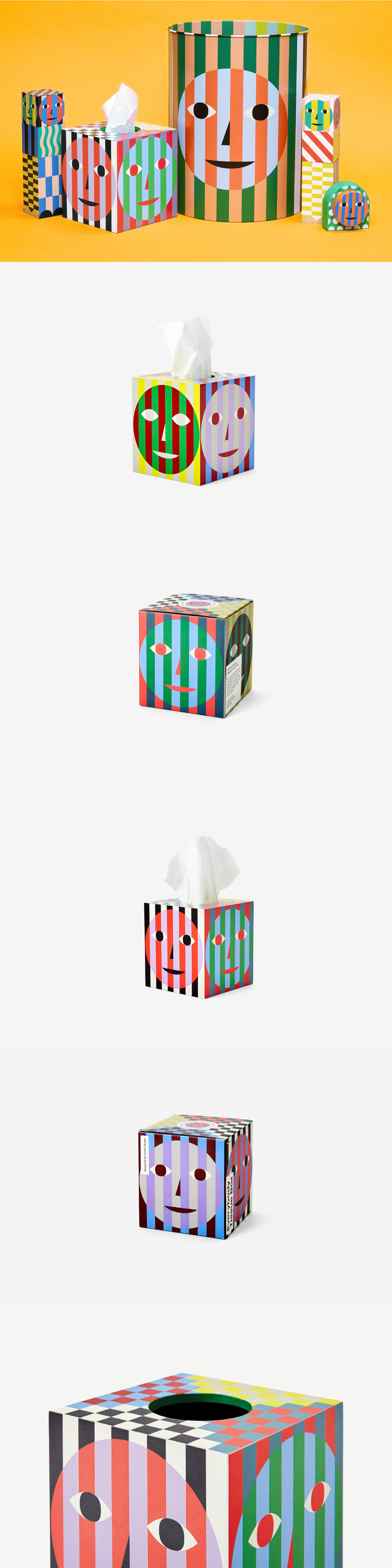 前衛風格且大膽鮮豔色彩的面紙盒。