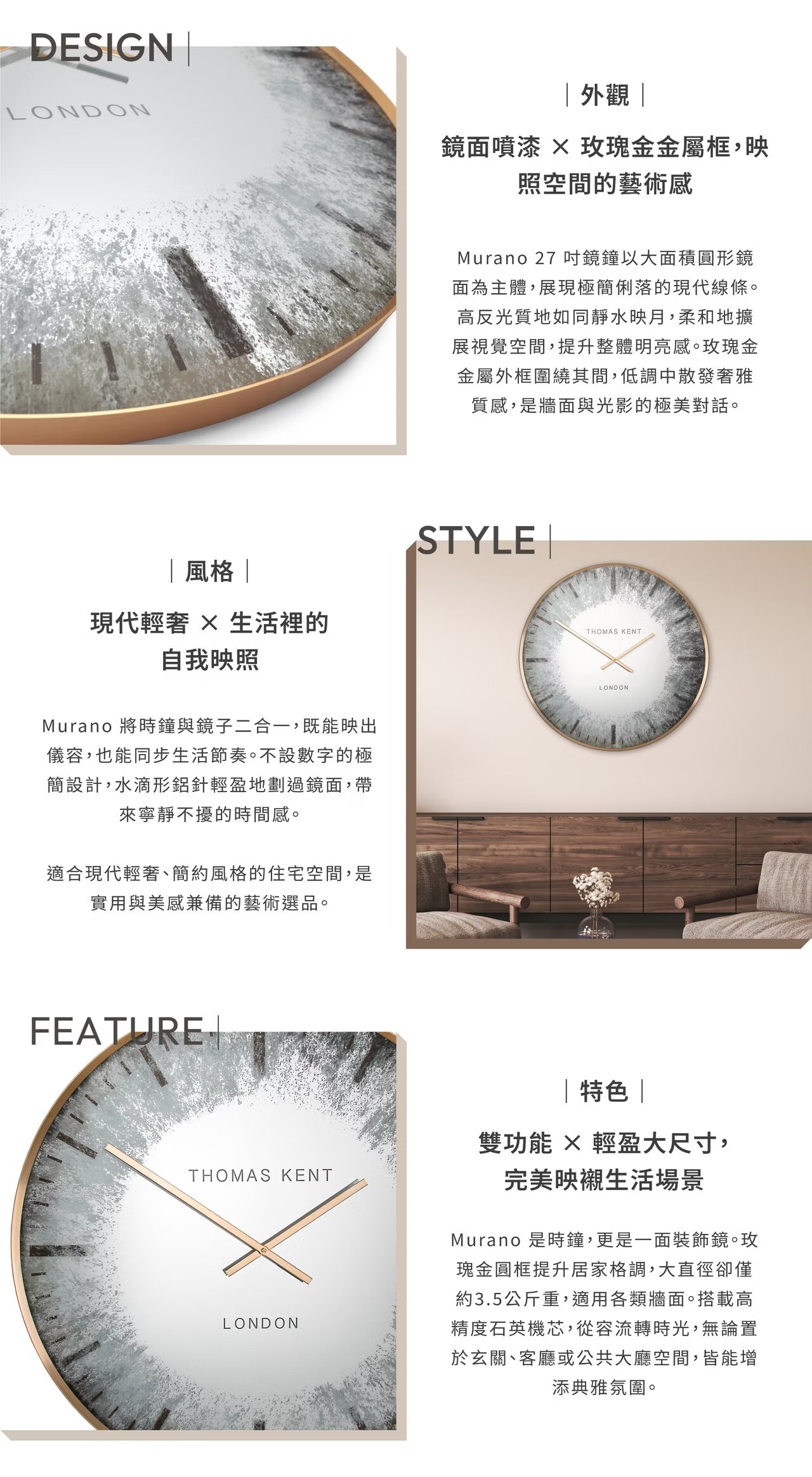 英國Thomas Kent-Murano掛鐘-27吋款 (流光鏡月)