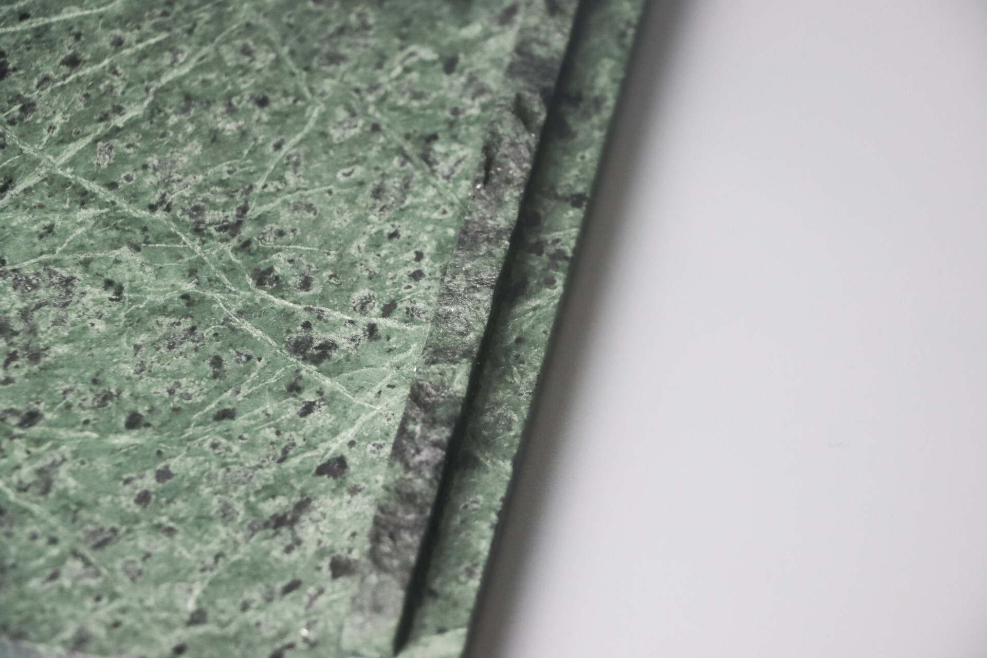 綠色蛇紋石,不喧嘩卻醒目,以天然紋理展現台灣石材獨有的深度與美感。