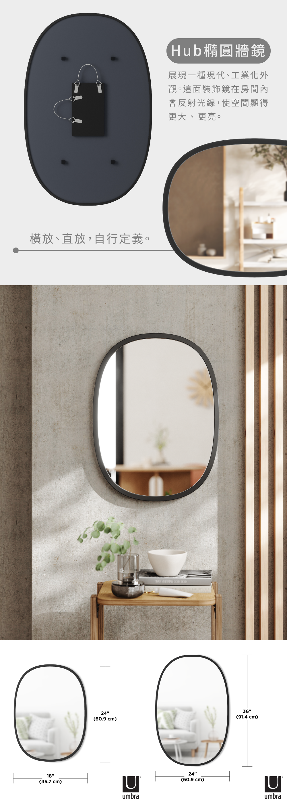 Hub 橢圓牆鏡,是進出頻繁區域的完美牆壁裝飾。
