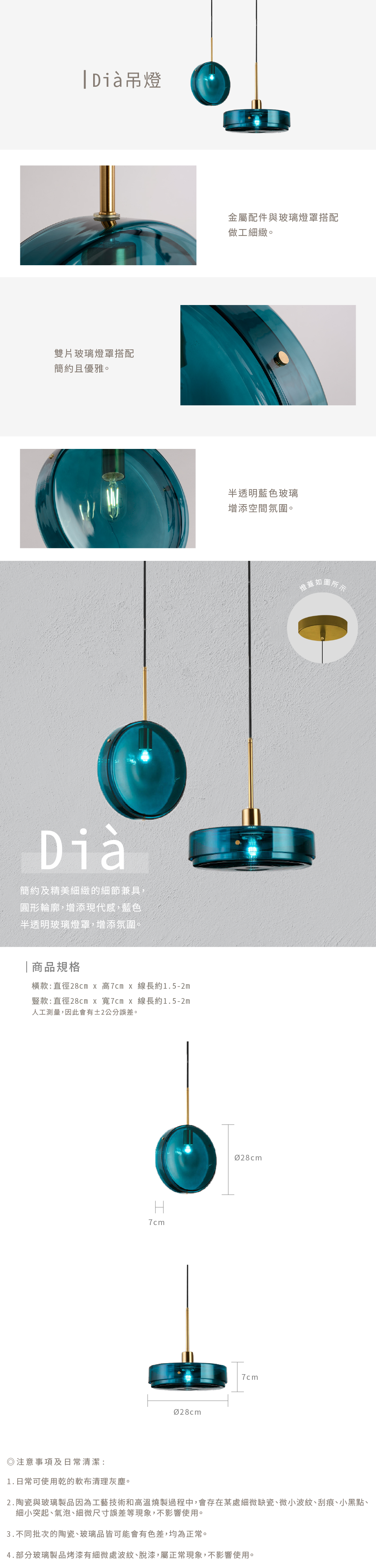 單燈尺寸 | 橫款: 直徑28 X 高7 cm